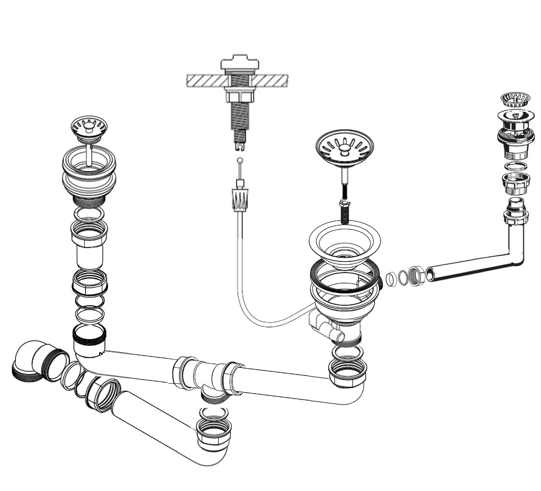 HPS-Ablaufverbindung 1½“ für Doppelspülen für Korbventiele mit wagerechen Ablauf ( Schraubverbindung ) geeignet für Doppelspülen mit unterschiedlich und gleich tiefen Becken
