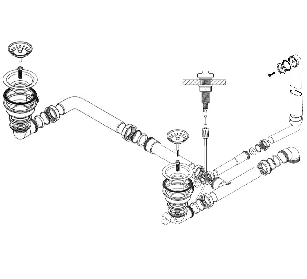 HPS-Ablaufverbindung 1½“ für Doppelspülen für Korbventiele mit wagerechen Ablauf ( Schraubverbindung ) geeignet für Doppelspülen mit unterschiedlich und gleich tiefen Becken