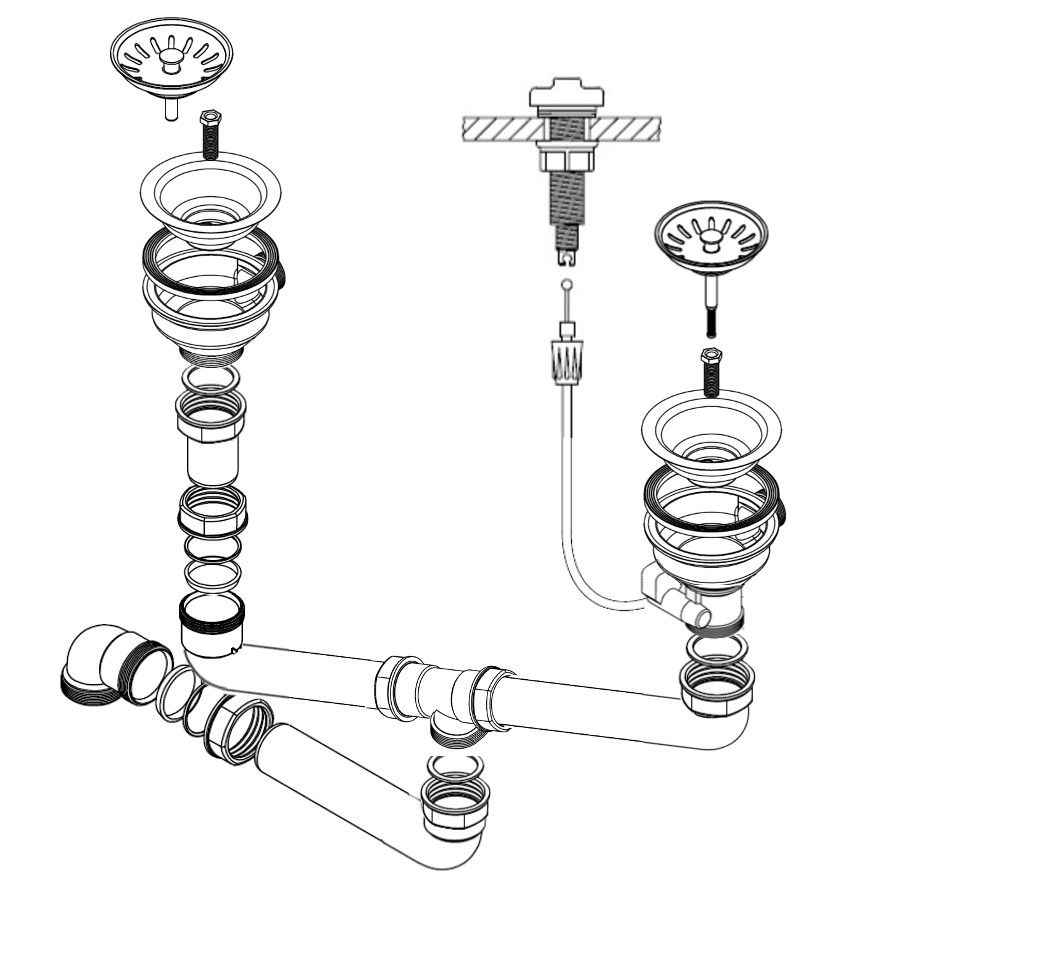 HPS-Ablaufverbindung 1½“ für Doppelspülen für Korbventiele mit wagerechen Ablauf ( Schraubverbindung ) geeignet für Doppelspülen mit unterschiedlich und gleich tiefen Becken