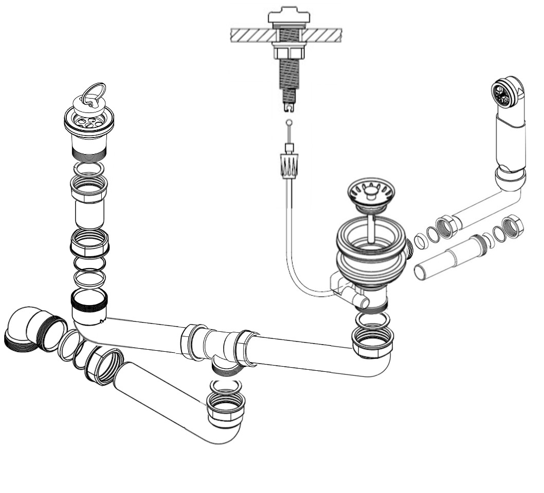 HPS-Ablaufverbindung 1½“ für Doppelspülen für Korbventiele mit wagerechen Ablauf ( Schraubverbindung ) geeignet für Doppelspülen mit unterschiedlich und gleich tiefen Becken