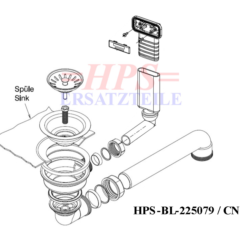 HPS-Ablaufgarnitur 1 x 3½" Korbventil mit Handbetätigung ( Ventilkelch ø 114 mm ) Überlauf seitlich rechteckig ( C-overflow ). Achtung: Nur für Edelstahlspülen.