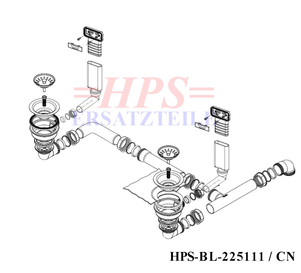 HPS-Ablaufgarnitur 2 x 3½" Korbventil mit Handbetätigung ( Ventilkelch ø 114 mm ) 2 x Überlauf seitlich rechteckig ( C-overflow ). Achtung: Nur für Edelstahlspülen.