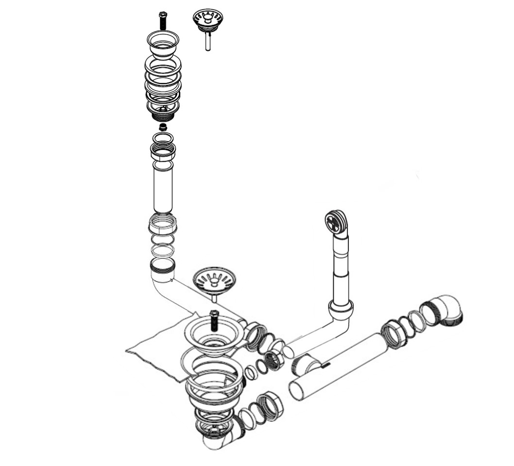 HPS-Ablaufverbindung 1½“ für Doppelspülen für Korbventiele mit wagerechen Ablauf ( Schraubverbindung ) geeignet für Doppelspülen mit unterschiedlich und gleich tiefen Becken