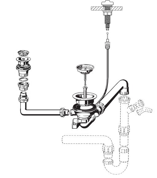 HPS-Ablaufverbindung 1½“ für Doppelspülen für Korbventiele mit wagerechen Ablauf ( Schraubverbindung ) geeignet für Doppelspülen mit unterschiedlich und gleich tiefen Becken