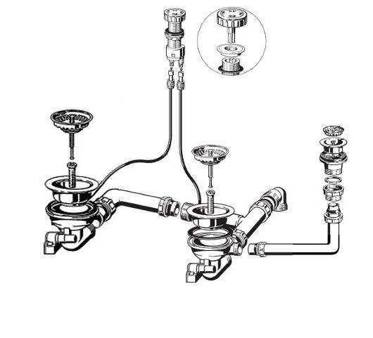 Die Ablaufgarnitur wird nur mit einfacher Excenterbetätigung für das Hauptbecken geliefert.