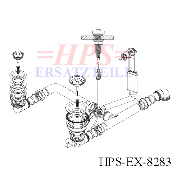 HPS-Ablaufverbindung 1½“ für Doppelspülen für Korbventiele mit wagerechen Ablauf ( Schraubverbindung ) geeignet für Doppelspülen mit unterschiedlich und gleich tiefen Becken