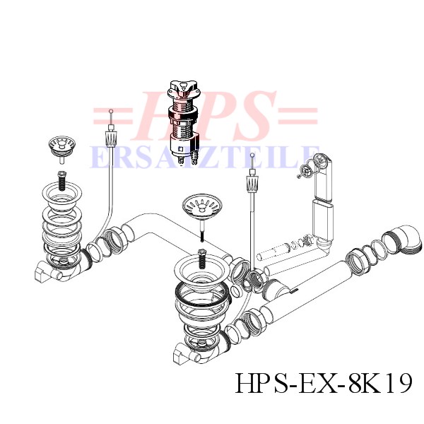 HPS-Ablaufverbindung 1½“ für Doppelspülen für Korbventiele mit wagerechen Ablauf ( Schraubverbindung ) geeignet für Doppelspülen mit unterschiedlich und gleich tiefen Becken
