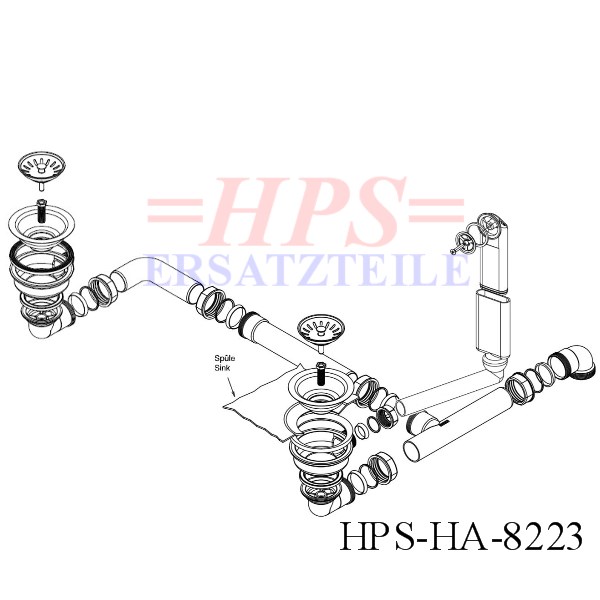 HPS-Ablaufverbindung 1½“ für Doppelspülen für Korbventiele mit wagerechen Ablauf ( Schraubverbindung ) geeignet für Doppelspülen mit unterschiedlich und gleich tiefen Becken