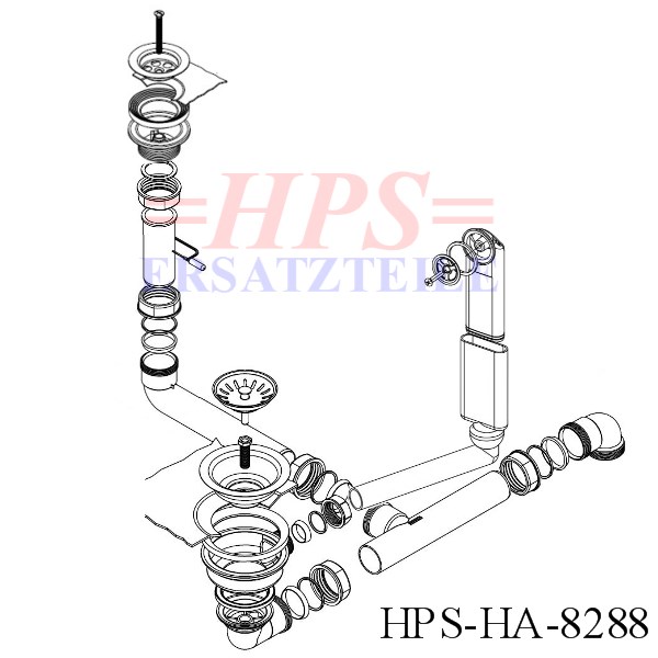HPS-Ablaufverbindung 1½“ für Doppelspülen für Korbventiele mit wagerechen Ablauf ( Schraubverbindung ) geeignet für Doppelspülen mit unterschiedlich und gleich tiefen Becken