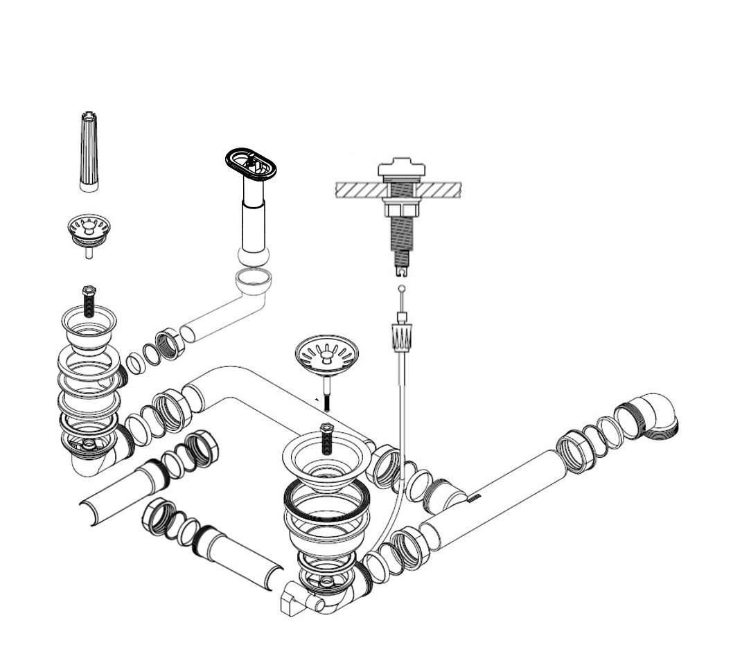 HPS-Ablaufverbindung 1½“ für Doppelspülen für Korbventiele mit wagerechen Ablauf ( Schraubverbindung ) geeignet für Doppelspülen mit unterschiedlich und gleich tiefen Becken