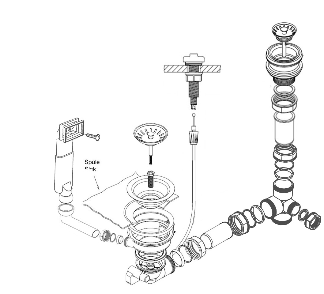 HPS-Ablaufverbindung 1½“ für Doppelspülen für Korbventiele mit wagerechen Ablauf ( Schraubverbindung ) geeignet für Doppelspülen mit unterschiedlich und gleich tiefen Becken