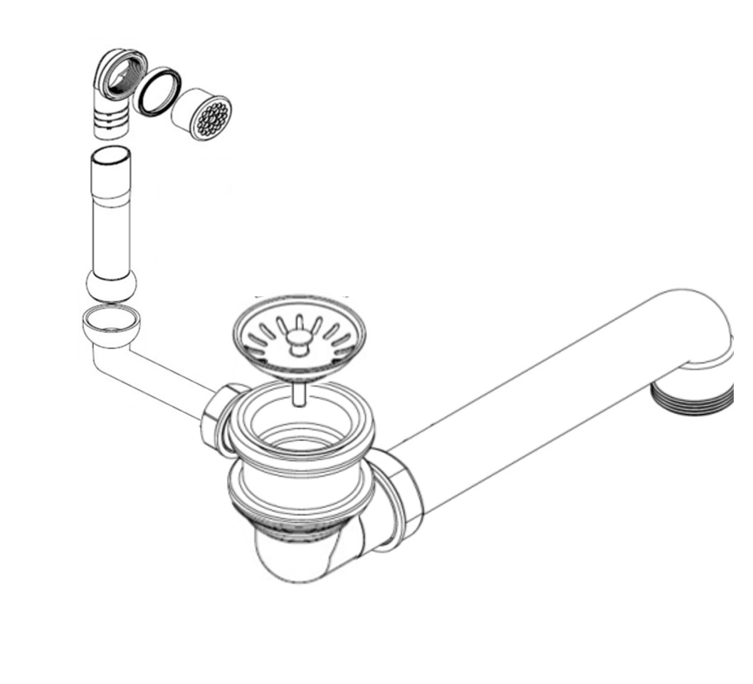 HPS-Ablaufverbindung 1½“ für Doppelspülen mit zentrischem Abgang, Höhenausgleichsstück und 1GA für Doppelspülen mit gleich tiefen Becken