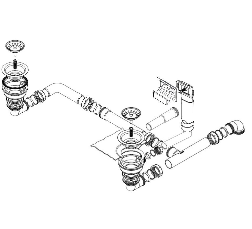 HPS-Ablaufverbindung 1½“ für Doppelspülen für Korbventiele mit wagerechen Ablauf ( Schraubverbindung ) geeignet für Doppelspülen mit unterschiedlich und gleich tiefen Becken