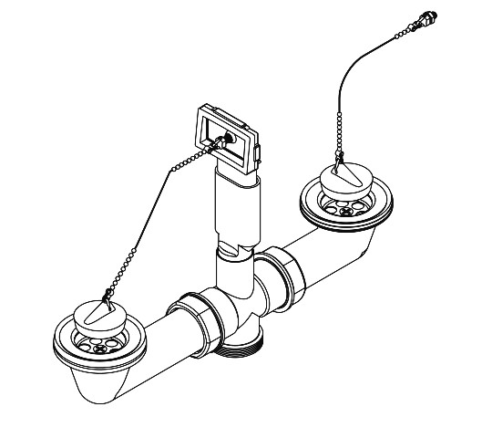 HPS-Ablaufverbindung 1½“ für Doppelspülen mit zentrischem Abgang, Höhenausgleichsstück und 1GA für Doppelspülen mit gleich tiefen Becken