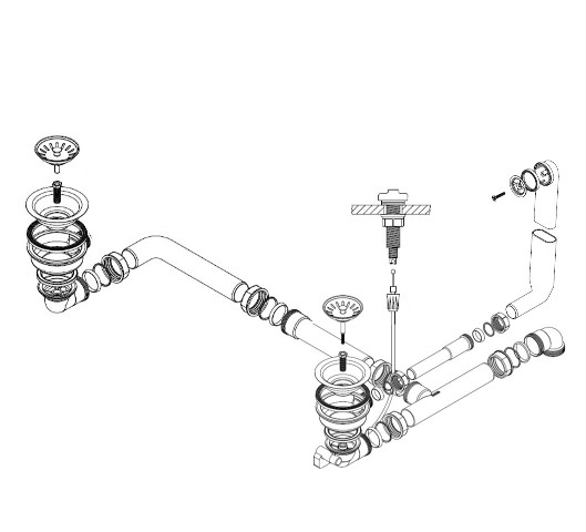 HPS-Ablaufverbindung 1½“ für Doppelspülen für Korbventiele mit wagerechen Ablauf ( Schraubverbindung ) geeignet für Doppelspülen mit unterschiedlich und gleich tiefen Becken