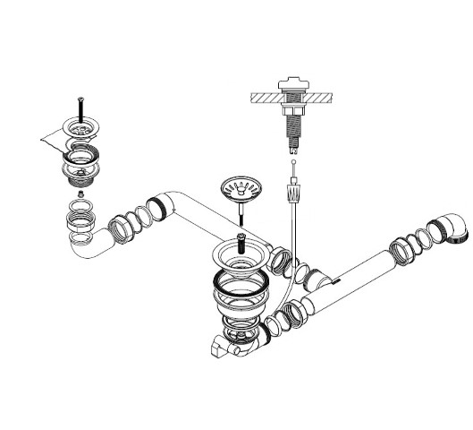 HPS-Ablaufverbindung 1½“ für Doppelspülen für Korbventiele mit wagerechen Ablauf ( Schraubverbindung ) geeignet für Doppelspülen mit unterschiedlich und gleich tiefen Becken