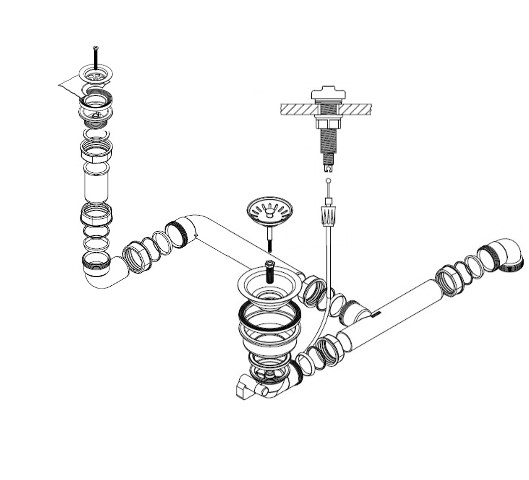 HPS-Ablaufverbindung 1½“ für Doppelspülen für Korbventiele mit wagerechen Ablauf ( Schraubverbindung ) geeignet für Doppelspülen mit unterschiedlich und gleich tiefen Becken