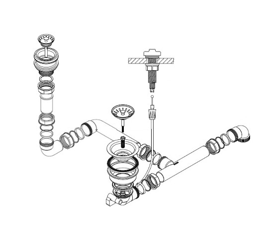 HPS-Ablaufverbindung 1½“ für Doppelspülen für Korbventiele mit wagerechen Ablauf ( Schraubverbindung ) geeignet für Doppelspülen mit unterschiedlich und gleich tiefen Becken