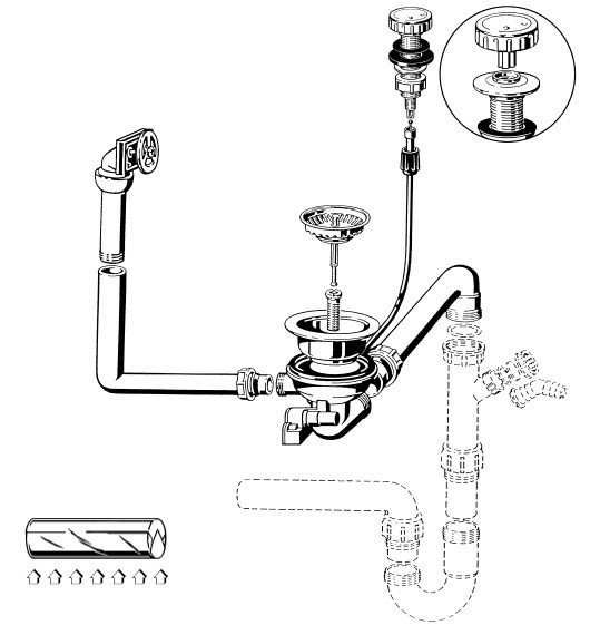 V&B-Ablaufgarnitur mit Excenterbetätigung 1 x 3 1/2" mit Überlauf seitlich für Luna Modell 6766, Condor 45 Modell 6745, Condor 50 ohne Resteausguss Modell 6744