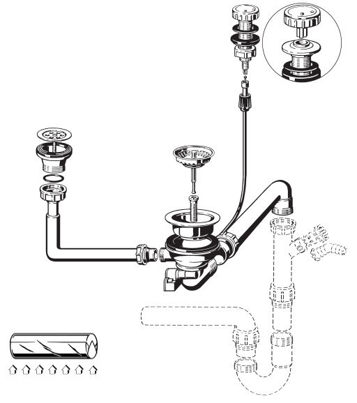 V&B-Ablaufgarnitur mit Excenterbetätigung 1 x 3 1/2" mit Überlauf von oben für Triano Eck Modell 6799, Laola 50 Modell 6778, Arcora 50 Modell 6767, Lagor 50 Modell 6740, Cisterna 60 A Model 6701, Triano 60 Modell 6749,Triano Zentrum Modell 6748, Arcora 90 Eck Modell 6747, Arcora Eck 105 Modell 6794, Charly Modell 6788, Andy Modell 6786, Metric Art 60 Modell 6792, Lagorpure 50 Modell 3301, Colani Modell 6755 / 6756