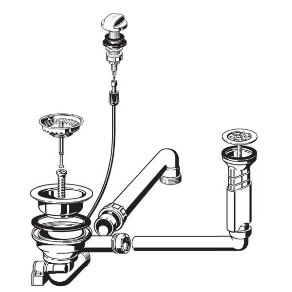 HPS-Ablaufverbindung 1½“ für Doppelspülen für Korbventiele mit wagerechen Ablauf ( Schraubverbindung ) geeignet für Doppelspülen mit unterschiedlich und gleich tiefen Becken