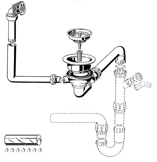 HPS-Ablaufverbindung 1½“ für Doppelspülen für Korbventiele mit wagerechen Ablauf ( Schraubverbindung ) geeignet für Doppelspülen mit unterschiedlich und gleich tiefen Becken