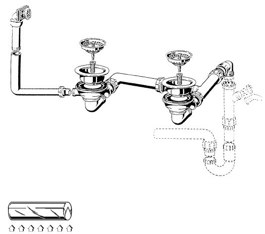 HPS-Ablaufverbindung 1½“ für Doppelspülen für Korbventiele mit wagerechen Ablauf ( Schraubverbindung ) geeignet für Doppelspülen mit unterschiedlich und gleich tiefen Becken