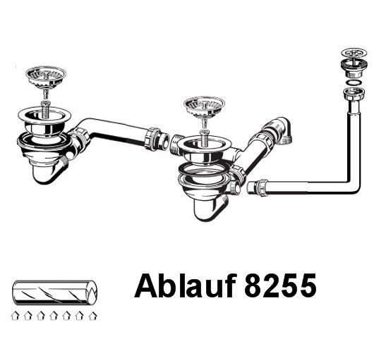 HPS-Ablaufverbindung 1½“ für Doppelspülen für Korbventiele mit wagerechen Ablauf ( Schraubverbindung ) geeignet für Doppelspülen mit unterschiedlich und gleich tiefen Becken