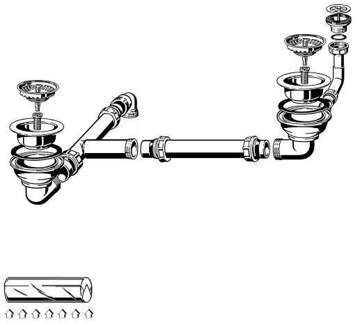 HPS-Ablaufverbindung 1½“ für Doppelspülen mit zentrischem Abgang, Höhenausgleichsstück und 1GA für Doppelspülen mit gleich tiefen Becken